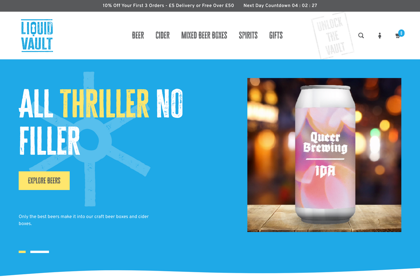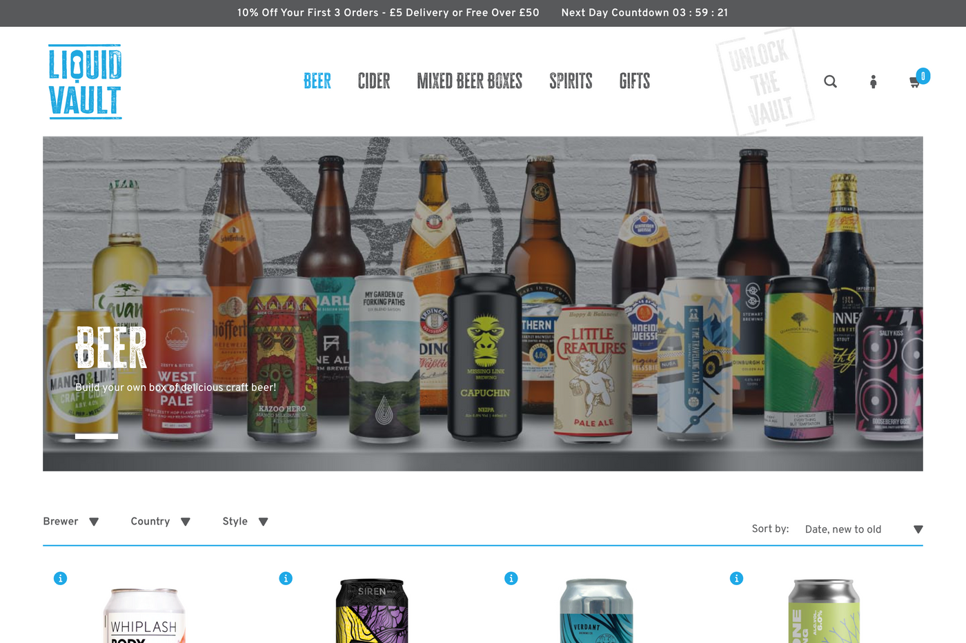 Our aim was to help Liquid Vault offer a better customer journey through a new website design with a custom Shopify theme design and site build, targeting alcohol drinkers nationwide to bring them the ultimate drinks discovery.