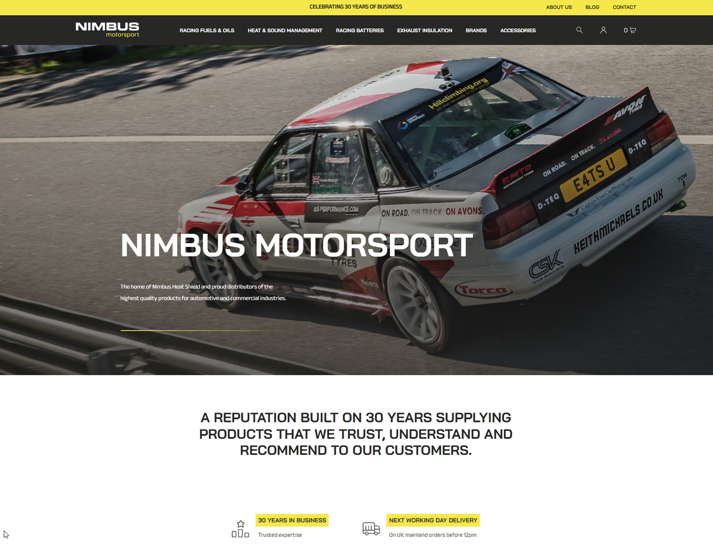 The new store needed to position Nimbus Motorsport as experts in their sector, whilst giving the flexibility for the Nimbus team to modify appearance, manage products, and build content efficiently and effectively.