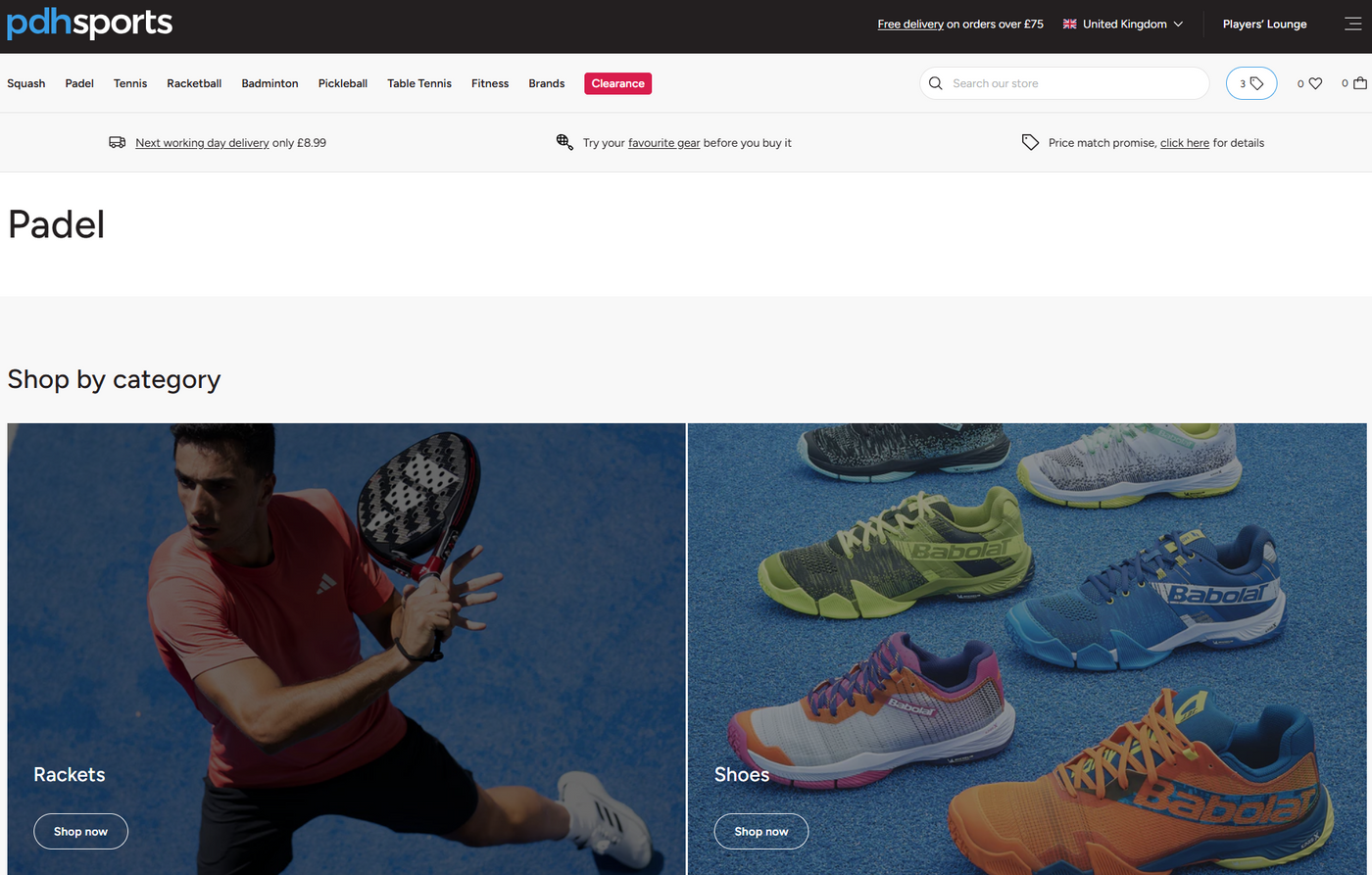Herd were tasked with growing PDH’s sales, conversion rate and average order value (AOV). The padel section was a key focus for growth.